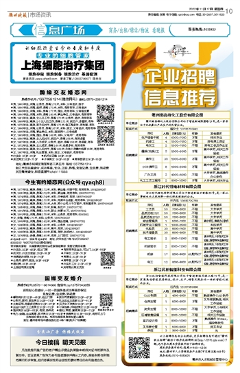 以上招聘信息由企业提供,更多招聘信息可通过“衢州就业招聘”微信小程序或招聘网站(http://0570.zjhr.com)了解,也可参加周末劳务集市线下招聘活动。