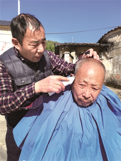 樊仁生(左)在为村民理发