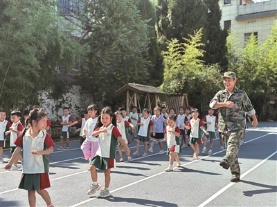 9月15日,龙游县华辰幼儿园大一班邀请了军人爸爸进校园,开展国防教育活动。身着迷彩服的“军爸爸”首先带领孩子们在操场上学习列队行进。他步伐矫健,动作标准,孩子们兴致勃勃地模仿着。“军爸爸”还结合九一八事变的历史,给孩子们讲述了革命先辈们为了国家和人民英勇抗争、不怕牺牲的故事。现场氛围严肃又活泼,在孩子们心中播撒下了国防教育的种子。