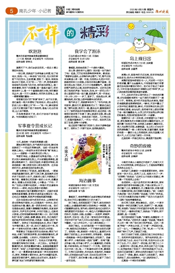 我到了海边。白白的浪花像一个个顽皮的娃娃一样,卷起花边向我跑来,一下子就抓住我的双脚了。我轻轻一跳,就踩到一朵浪花上,晶莹的水花溅到了我的脸上,冰冰凉凉的,非常舒服。我就像一条跳跳鱼一样在水里蹦来蹦去,好玩极了。我拿着小铲子、小桶和爸爸一起找“宝藏”。我弯下腰,左手拿小桶,右手拿小铲子,小心翼翼地挖,仔细地看,仔细地寻找,终于找到了一个贝壳。我把它放在水中洗一洗,哇,一个粉紫相间的贝壳,漂亮极了。贝壳们五彩缤纷,形状各异,有扇形的,有螺旋形的,还有些说也说不出来、见也没见过的贝壳……