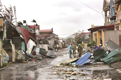 越通社9月30日援引越南农业与环境部消息报道说,截至当地时间29日23时,台风“博罗依”在越南已造成19人死亡、88人受伤,另有21人下落不明。据报道,台风“博罗依”造成超过10万幢房屋受损,其中7万多幢在受灾严重的河静省。总计超过9400公顷水稻和其他农作物被淹,超过1700公顷水产养殖遭破坏,交通设施、堤坝等基础设施严重受损。图为9月29日,在越南清化省,多栋民宅屋顶被掀翻。 新华社发