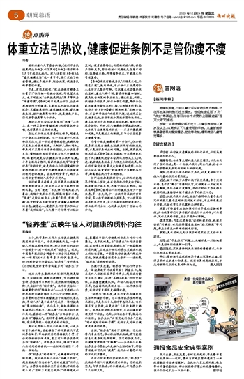 于是,有网友调侃:“现在连体重都要立法管了?”但仔细一想就会发现,即使望文生义,也不可能把“全民健康促进”简单等同为“体重管理”。《条例》的目标是全方位、全生命周期保障全民健康,主要内容包括优化健康服务、完善健康保障、建设健康环境、普及健康生活、推行健康影响评估、发展健康产业、强化数智健康等七个方面。