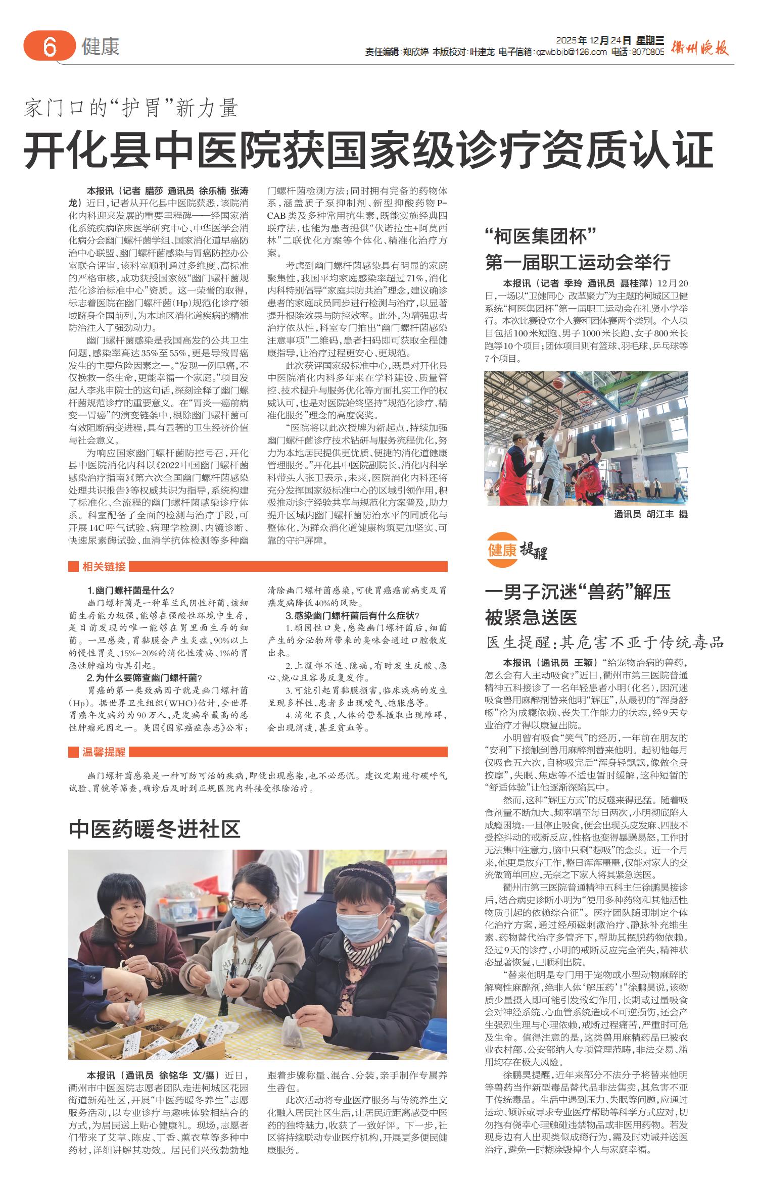 开化县中医院获国家级诊疗资质认证