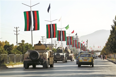 8月15日拍摄的阿富汗喀布尔政府军车队。