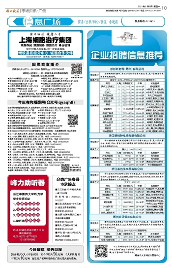 《你多我少》《人才市场》栏目 30个字以内50元/天 个人求职:每15个字以内10元/天 备注:客户前来刊登分类广告时,请先致电垂询。