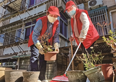 7月11日,在柯城区衢化街道滨三村社区,志愿者们冒着高温清扫辖区楼道及各个角落的生活垃圾、蜘蛛网,以实际行动巩固创文成果。