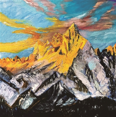油画 《日照金山》