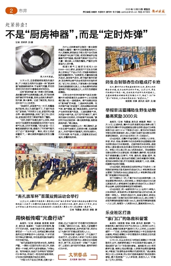 本报讯 (记者 吴婧涵 报道组 柴梦文 通讯员 陈紫琳) “光盘行动来倡导,餐厅不可多点菜。食堂不能多打饭,厨房饭菜要扣好……”12月19日,在柯城区衢化街道昌和社区党群服务中心活动室,77岁的居民方瑞仙打着快板,向在场居民展示她新创作的快板作品。